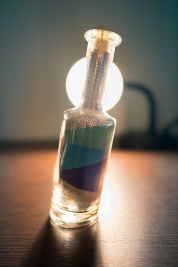 Так и представил себе, что поверхность стола - это морской берег, лампа на заднем плане - заходящее Солнце, а в бутылке сокрыто нечто таинственное...